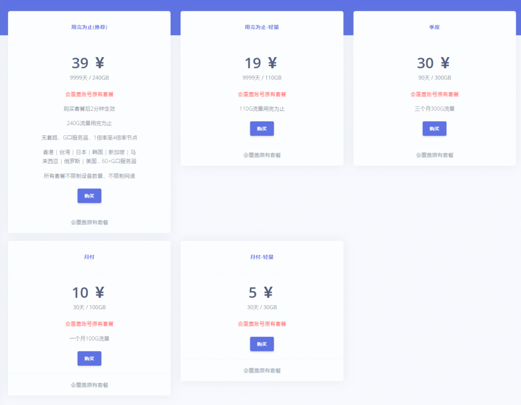 套餐低至5元/30天/30G 起,性价比高